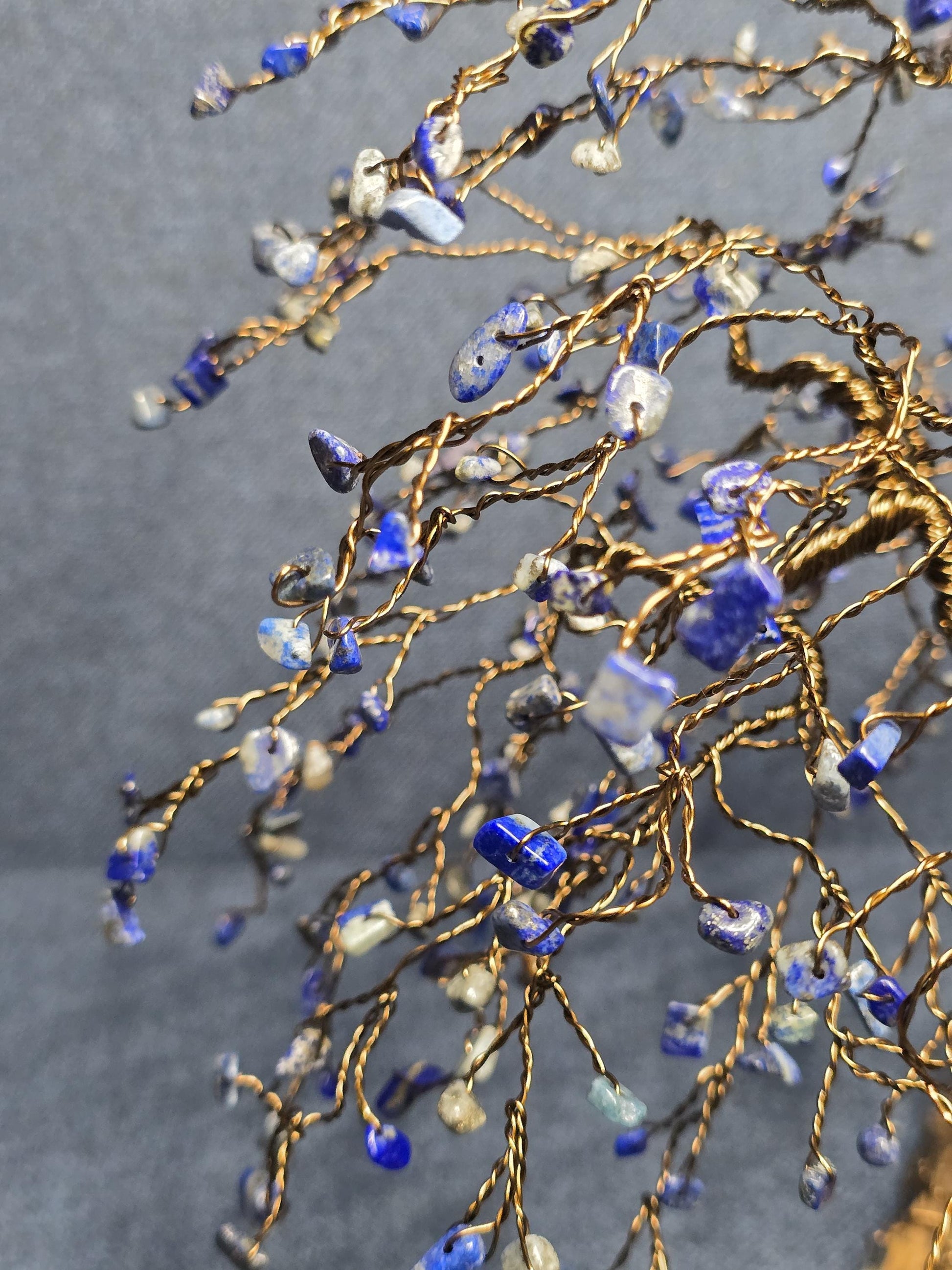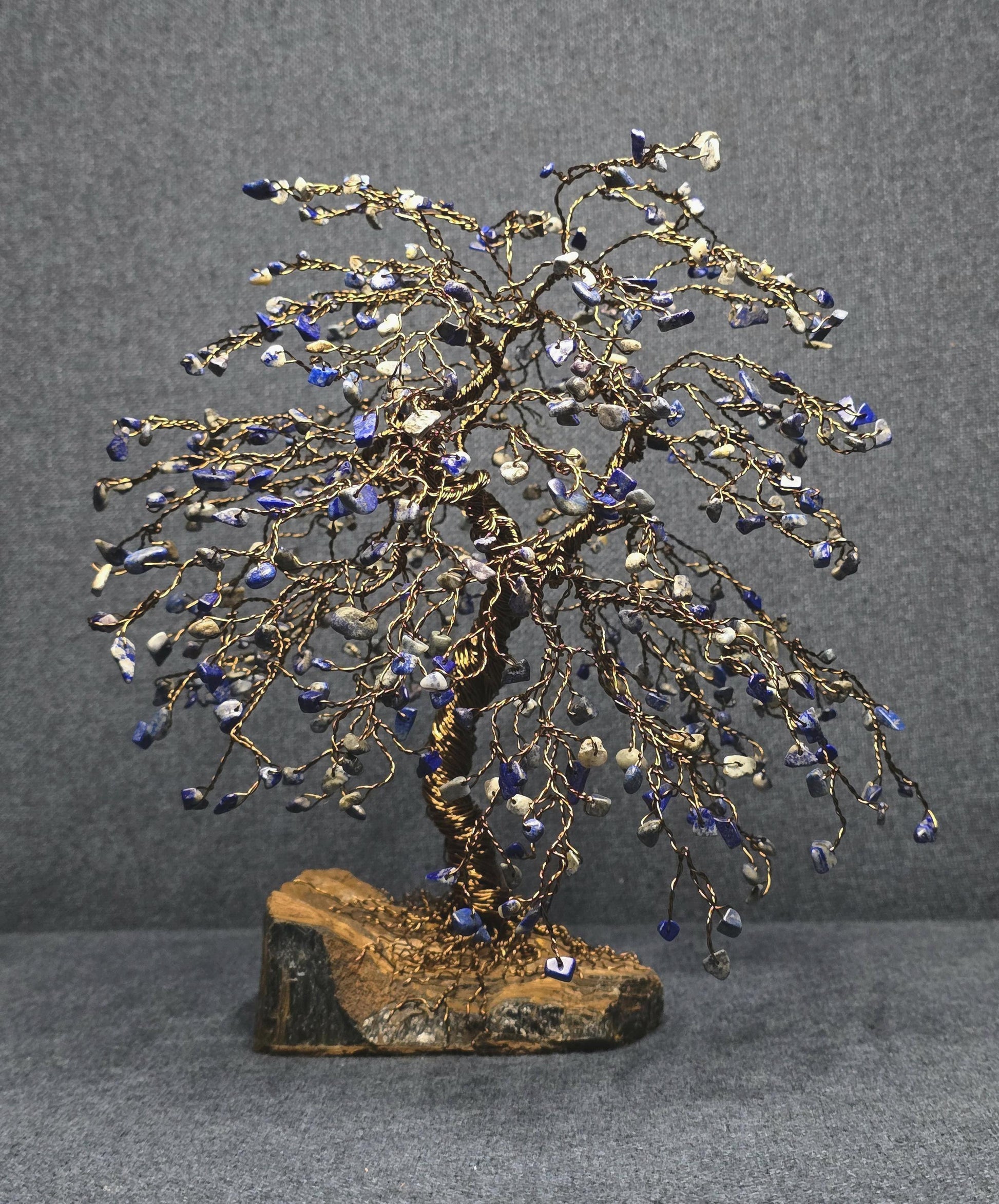 Tap into inner truth and ancient wisdom with this handcrafted lapis lazuli gemstone tree sculpture, wire-wrapped and rooted in natural stone. A powerful statement for your altar, reading nook, or meditation space, this tree promotes deep thought and intuition.