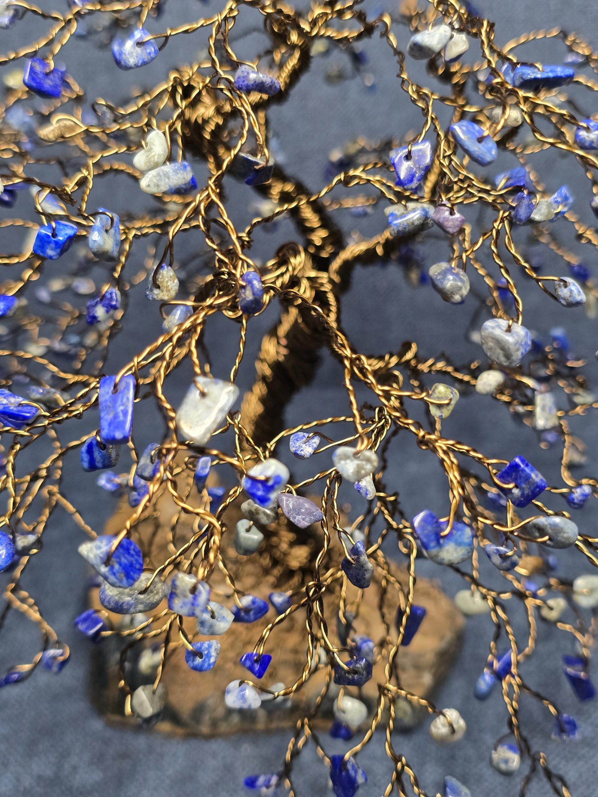Large Lapis Lazuli Crystal Tree on Tigers Eye Rock Base