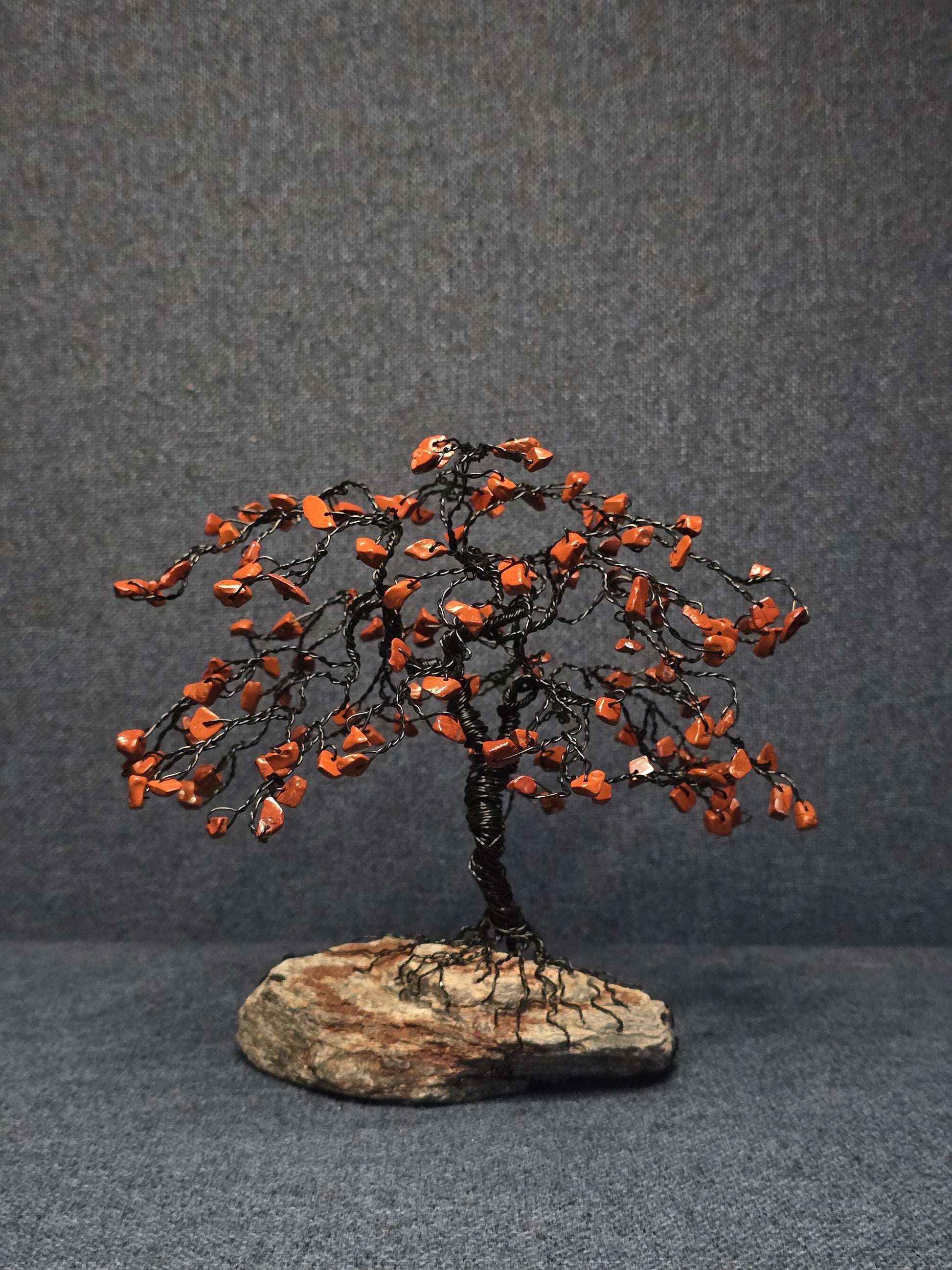 Red Jasper Bonsai Crystal Tree on Black Hills Rock Base